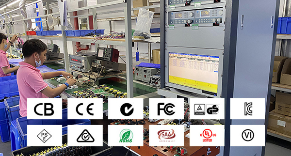 公司產(chǎn)品已通過多項國際和國內(nèi)權(quán)威認證,包括:ISO9001質(zhì)量管理體系認證;中國CCC認證;歐盟CB認證、CE認證GS認證、RoHS認證;美國FCC認證、ETL認證、UL認證(UL1310標(biāo)準(zhǔn)、UL60065標(biāo)準(zhǔn)、UL60950-1標(biāo)準(zhǔn));日本PSE認證;韓國KC認證、KCC認證;印度BIS認證